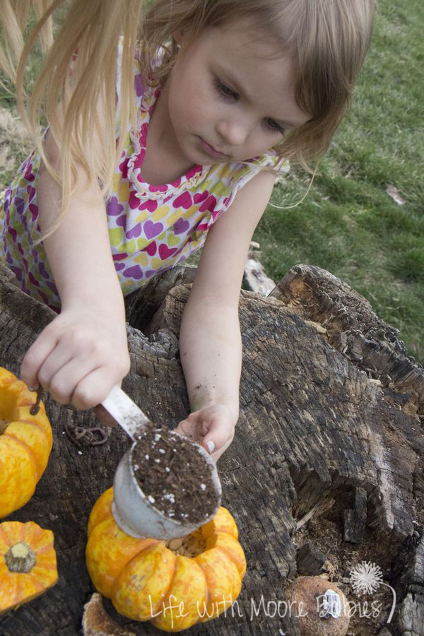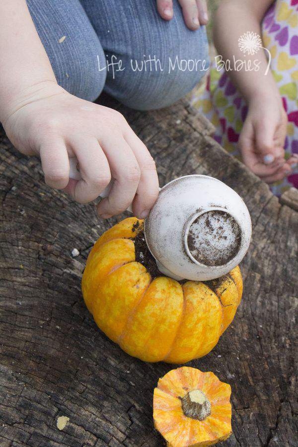 Тепер наповніть гарбуз землею (довірте цей етап дітям) і поливайте щодня.