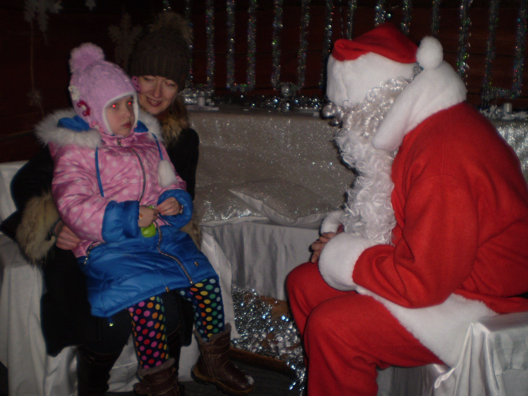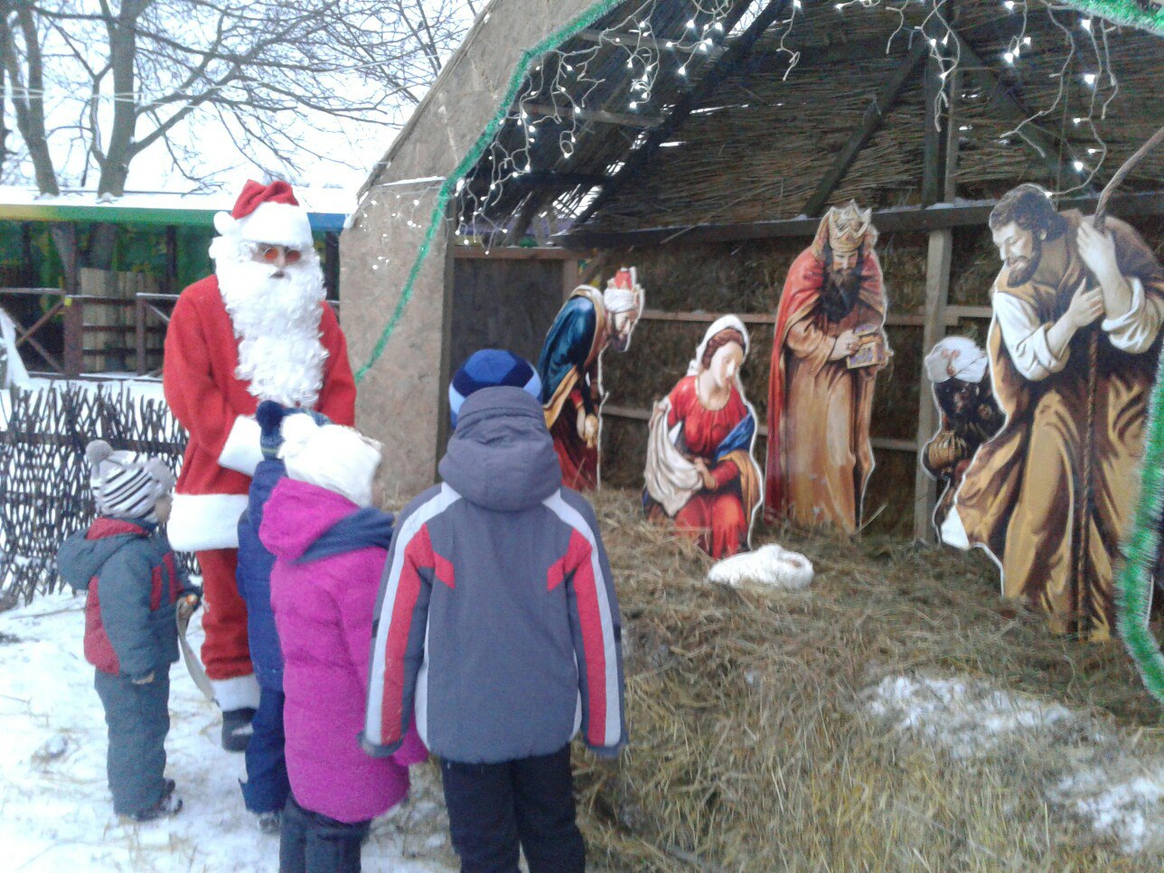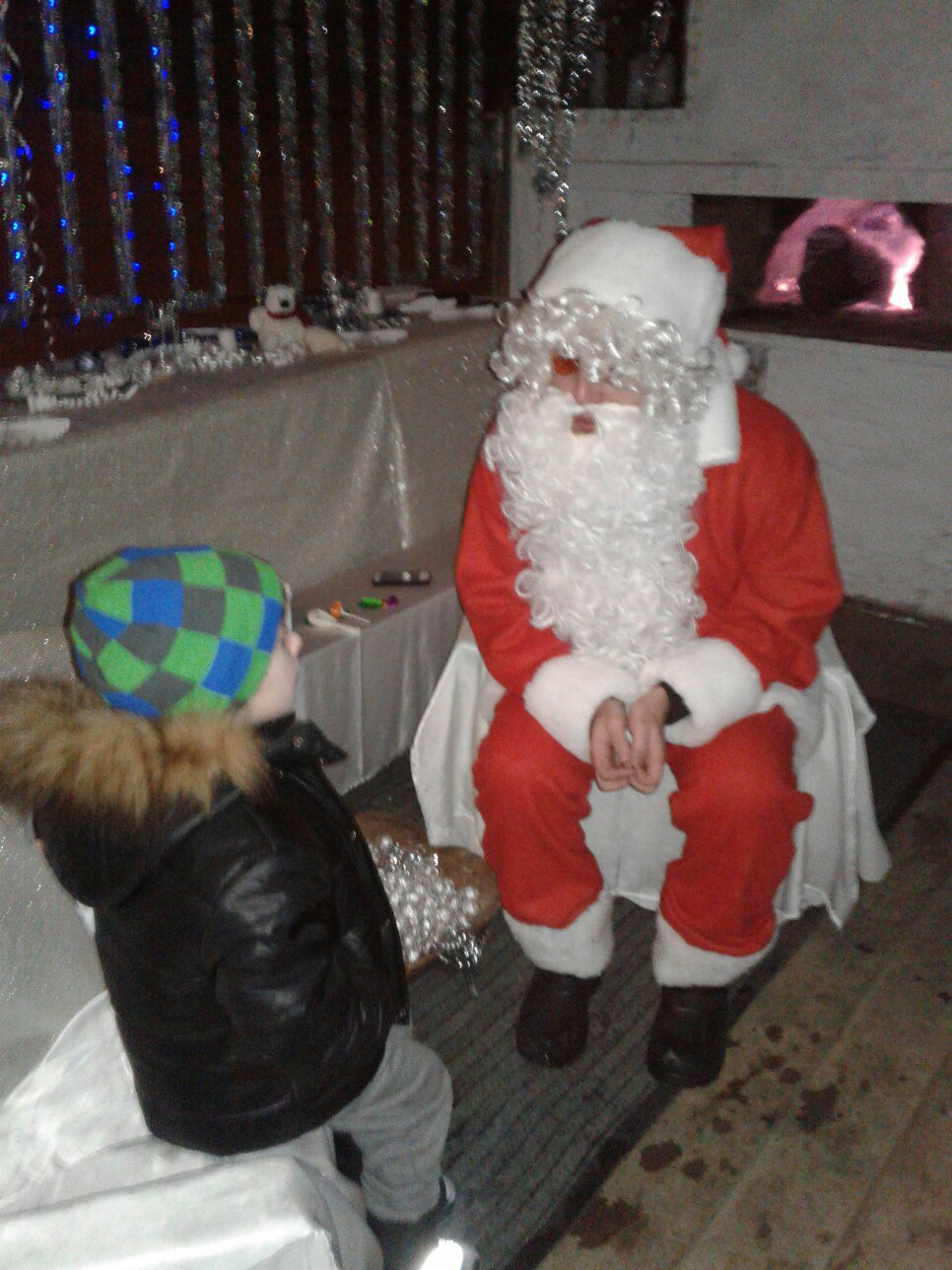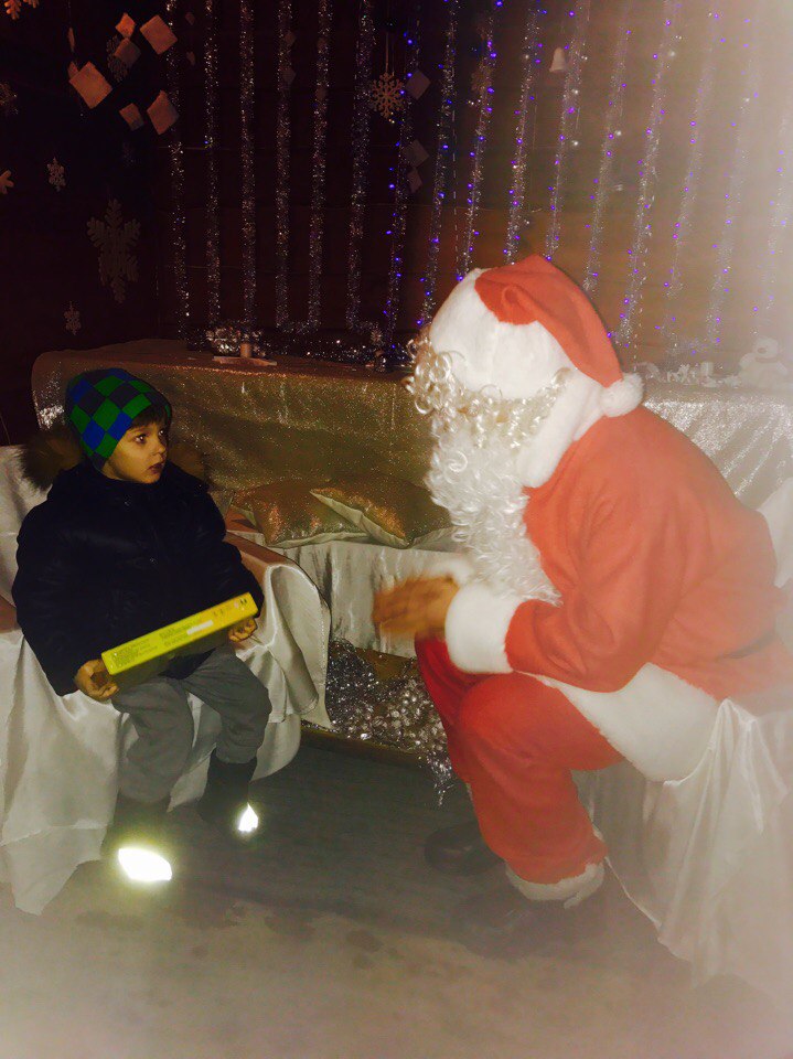 Він спілкувався із дітлахами у чарівні хатинці із справжньою піччю. Дарував діткам срібний горішок бажань. Також дітки слухали різдвяну історію біля шопки та розважалися із ельфами. Кожен міг посидіти у санях Санти, на яких він розвозить подаруночки.
